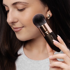 Blur the lines between your skin and makeup flawlessly with our new tapered blending brush. Enjoy its comfortably shaped handle and thick yet soft dome-shaped brush, designed to blend out any complexion product immaculately and with ease.